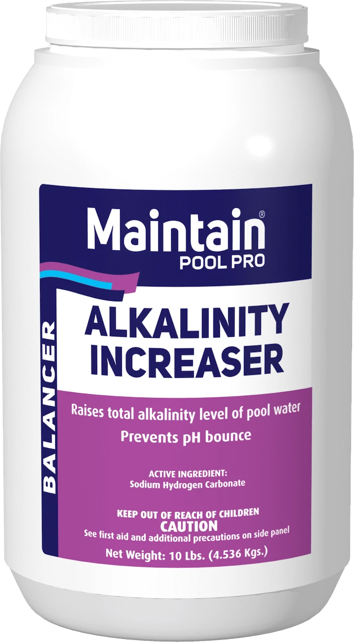 Raise your swimming pools total Alkalinity with our premium pool chemical by Maintain. Alkalinity is one of the most important pool water balance properties!