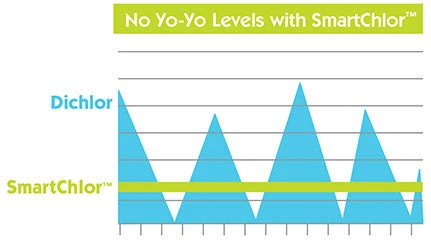- Kills bacteria with less 75% less chlorine than the ordinary system.